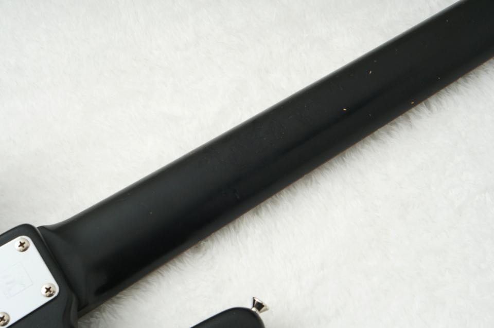 ネックもボディ同様のサテンブラック仕上げ、指板にはローズウッドを採用。