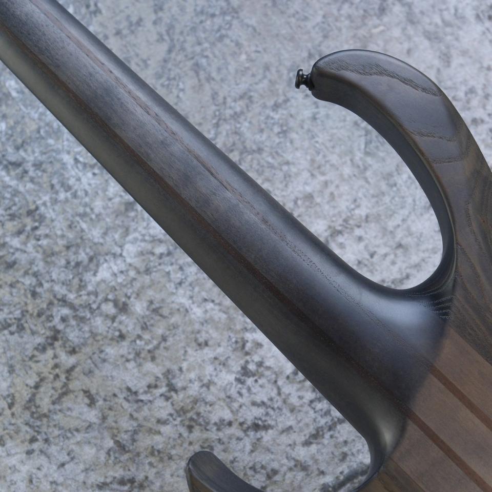 ネックにはメイプル、ウォルナットの5ピース、且つ、グラファイトロッドにより、ネックの剛性を高めるだけでなく、明瞭なアタック感を実現しております。