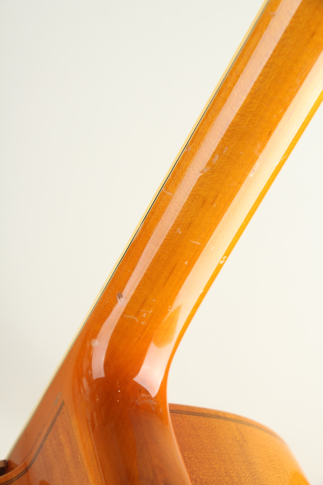 こちらFホール付近にトップクラック修正あり、キズ等は散見されますが、ネックコンディションは良好でトラスロッド余裕有、フレット残7割と演奏面は良好です。セミハード・ハードケースが付属します。