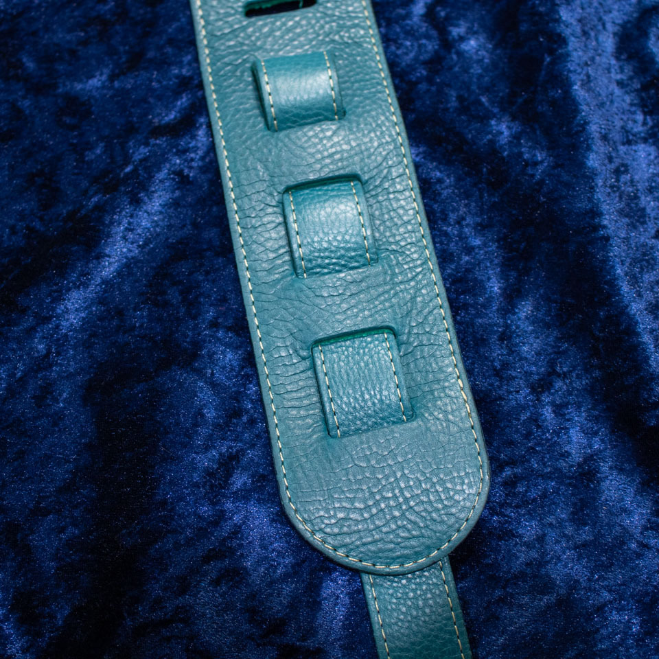 カラーは鮮やかなターコイズブルーをチョイス。青系のカラーに合わせるのはもちろん、サンバースト等の無難なカラーのギターの差し色にしてもかっこいいかもしれません。