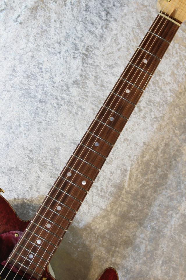 本機はセミホロウ構造という事もあり、材としては非常に相性が良く、またルックス面でも非常に貫禄のあるクールなルックスに仕上がっております。