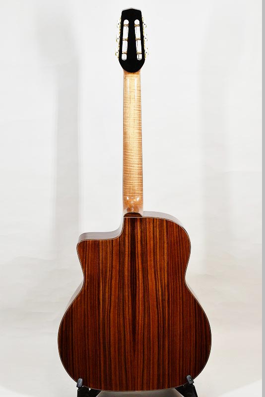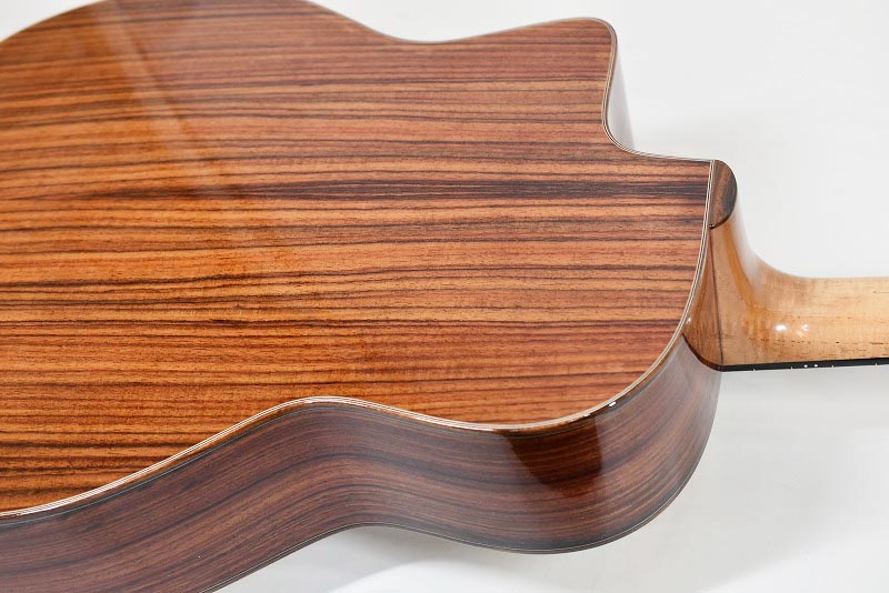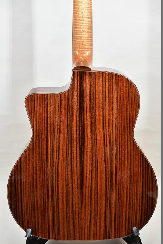 サイド&バックは杢目の綺麗なローズウッド、ウッドバインディングも非常に雰囲気良き仕上がりです。