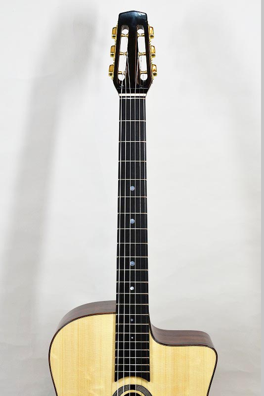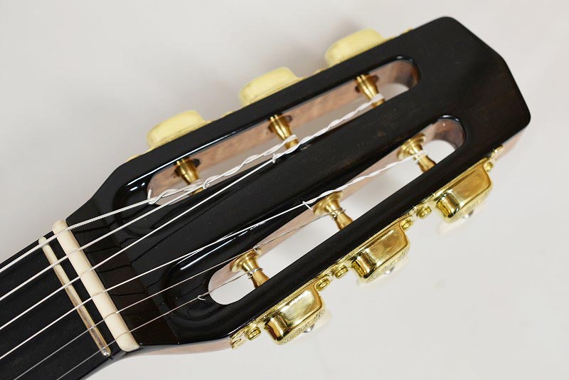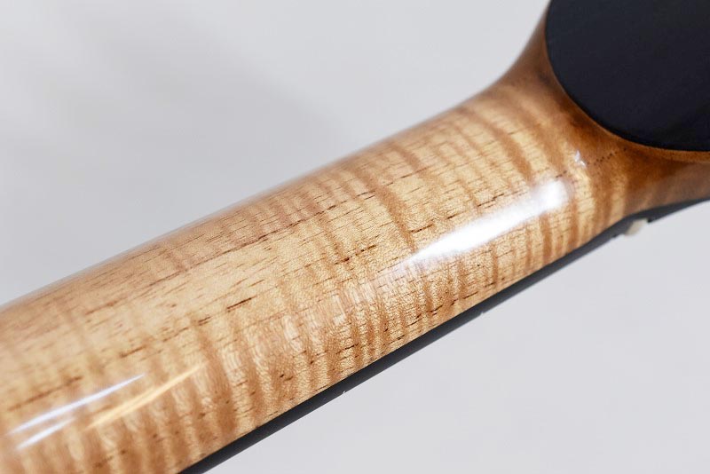 エボニー指板に約44.5㎜幅の0F、ネックシェイプは握り易いUシェイプ、670㎜スケールとなります。
