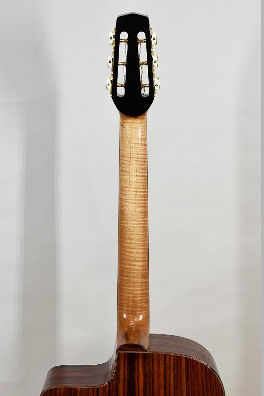 ネックはCedrelaスパニッシュシーダーと呼ばれる広葉樹でフレイムのびっしり入ったトラ杢がまた美しい素晴らしいネックです。