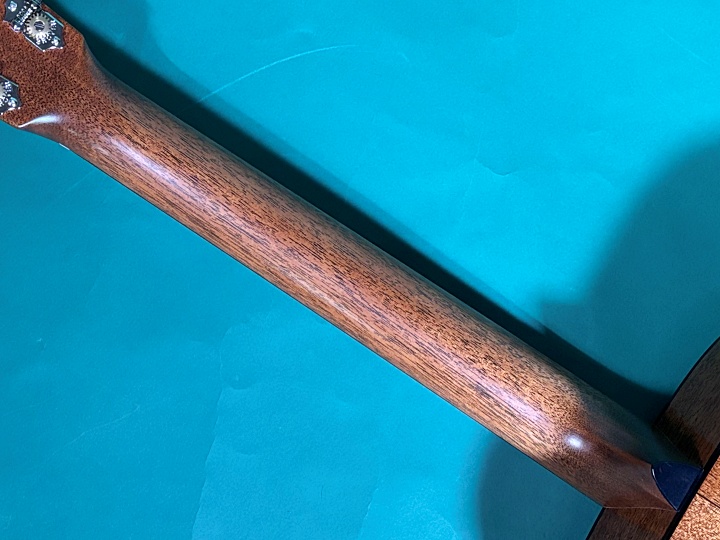 入荷時の弦高は 12 フレット上で 6弦:2.5mm、1弦:1.8mm。ネックコンディションも問題なく良好です。