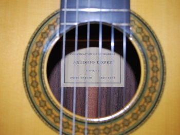 アントニオ・ロペスのラインナップはエントリーモデルからハイエンドモデルまでオール単板仕様だそうだが、当店で精査したところ、本器の仕様については、トップ単板・サイド&バック合板と判定している。