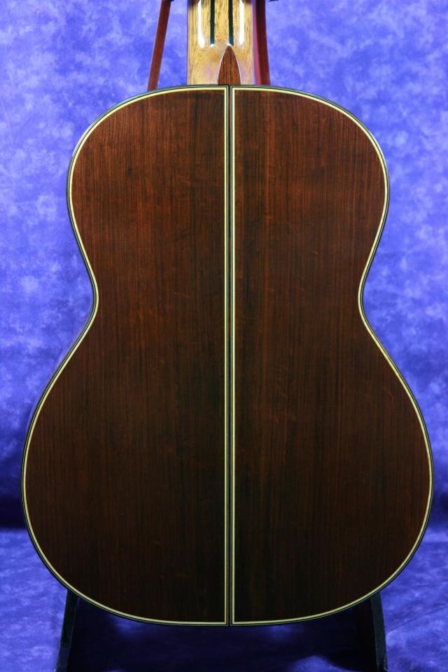 表面板は優しい杢目(もくめ)のジャーマンスプルースでサイド・バックは初めて見る素晴らしい柾目(まさめ)のマダガスカルローズウッドです。