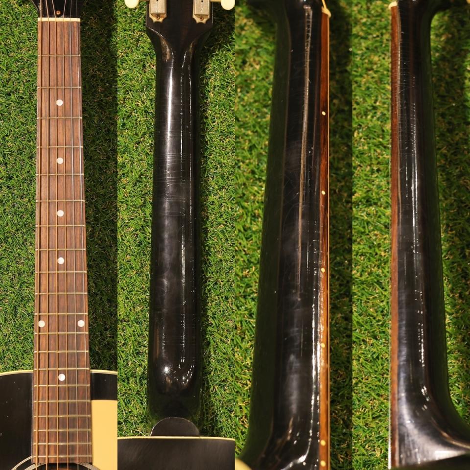 サウンドホール脇の塗装剥げやウェザーチェック、ロッドカバーの錆びたスクリュー等の経年変化したルックス!通常の白いGibsonロゴ入りのピックガードはロゴなしのアイボリーカラーに変更。そしてギブソンマニアの皆様!ヘッドロゴにご注目ください!Gibsonの"i"ドットが"G"にくっついてます!この15年程再現してもらえなかったOld Styleです!