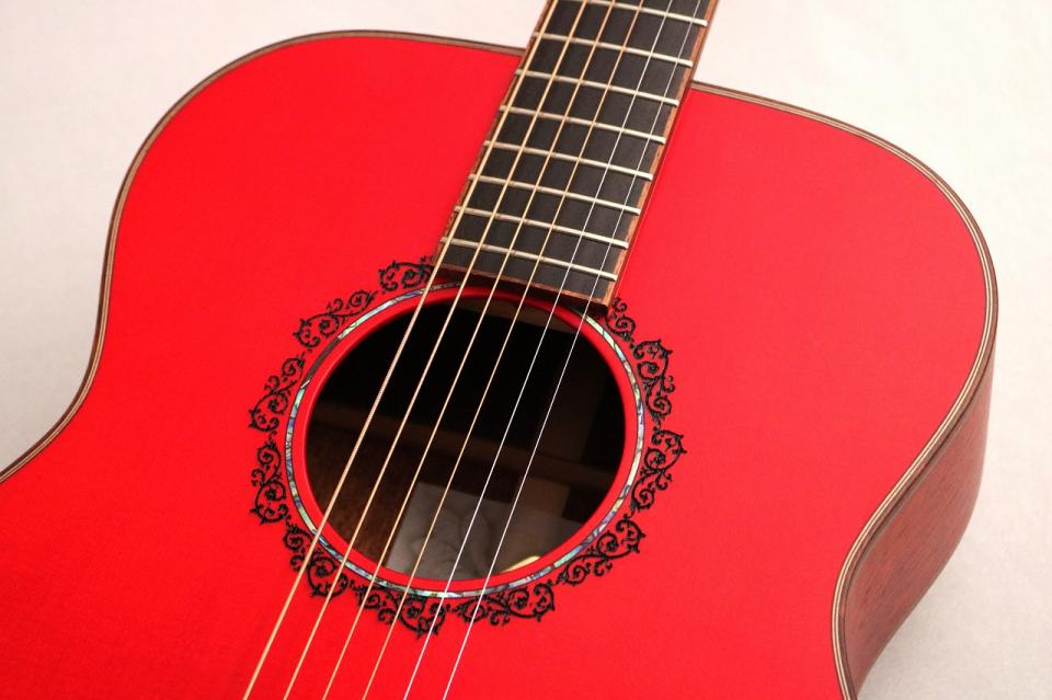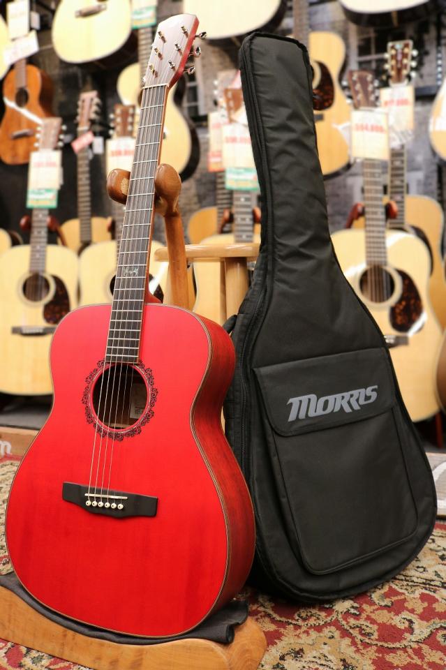 そんなMorrisより、鮮やかなカラーリングが施されたモデルが登場です!当モデルはポップなカラーが魅力のラインナップとなっており、本機はウォームレッド(WR)カラーを採用。アコギではあまり見ない鮮やかなカラーとなっております!
