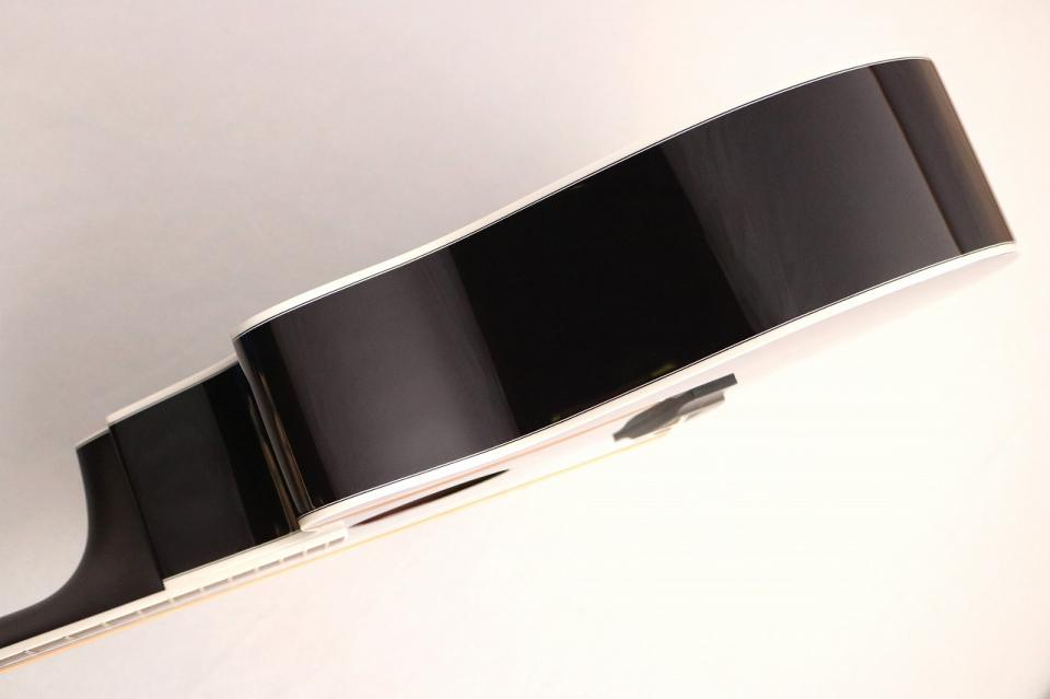 ルックスだけでも十分魅力的なモデルですが、約43mmのナット幅と程よく丸みを帯びたネックシェイプによりどなたでも自然と手に馴染みやすい設計で演奏性も非常に高いモデルとなっております。