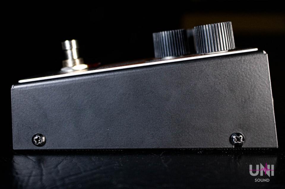 シンプルな3つのコントロールのレイアウト、トゥルーバイパス仕様。マエストロ・ロゴの上部にあるビューグルのLEDで、エフェクターのオンオフをいつでも確認できます。