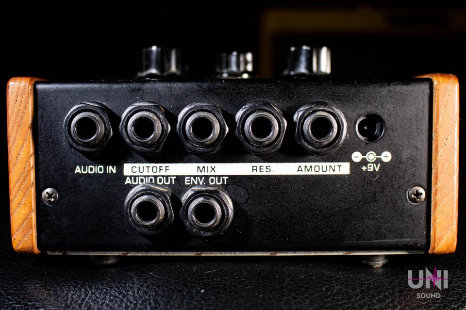 Moogerfoogerのフィルター・コントロール・パラメータは、信号のミックス量、カットオフ周波数、レゾナンス量、エンベロープ量です。ローパス・フィルターのパラメータは全て、いじるのに素晴らしいフィーリングのノブ、エクスプレッション・ペダル及び外部CVで操作できます。パネル・スイッチでは、フィルター・モードとエンベロープ・フォロワー・スピードを選択できます。オーディオ入出力、ペダル入力、エンベローブ・フォロワー出力には標準ジャックが装備されています。頑丈ながら滑らかな動作のバイパス・スイッチは、テーブル・トップでも足での操作でも使用可能です。