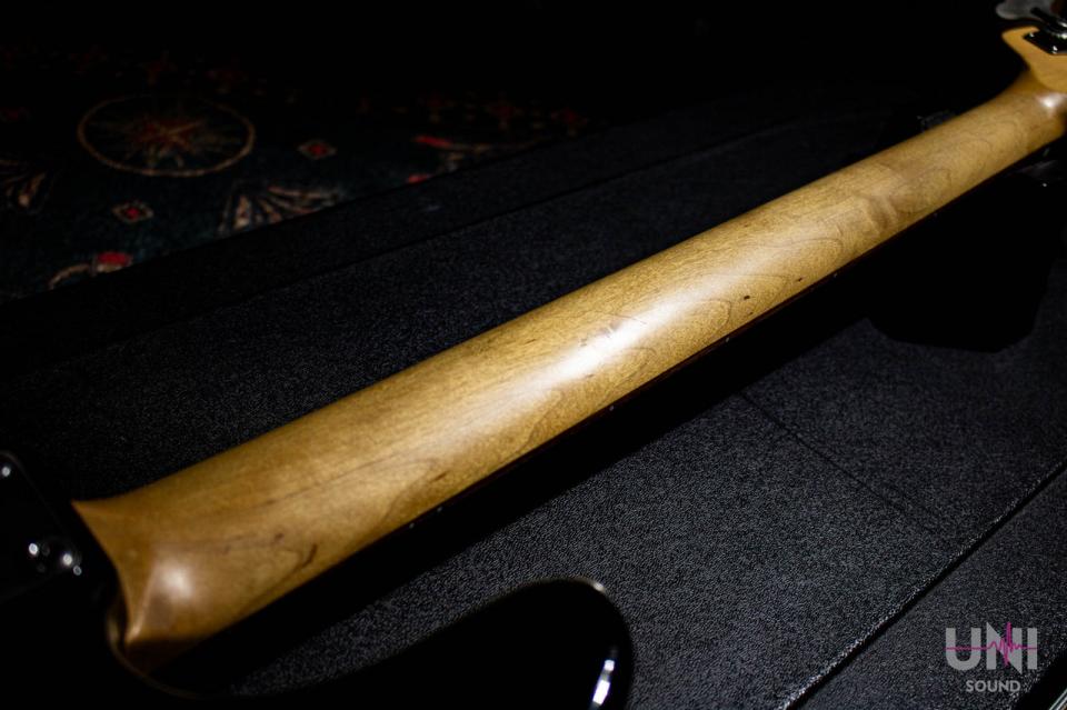 補正ナットのついたネックは6点止めでトラスロッドはネックエンド側で調整ホイールという現行の一つ前の仕様。