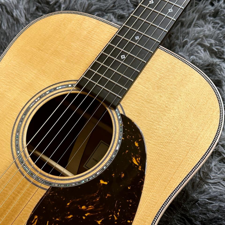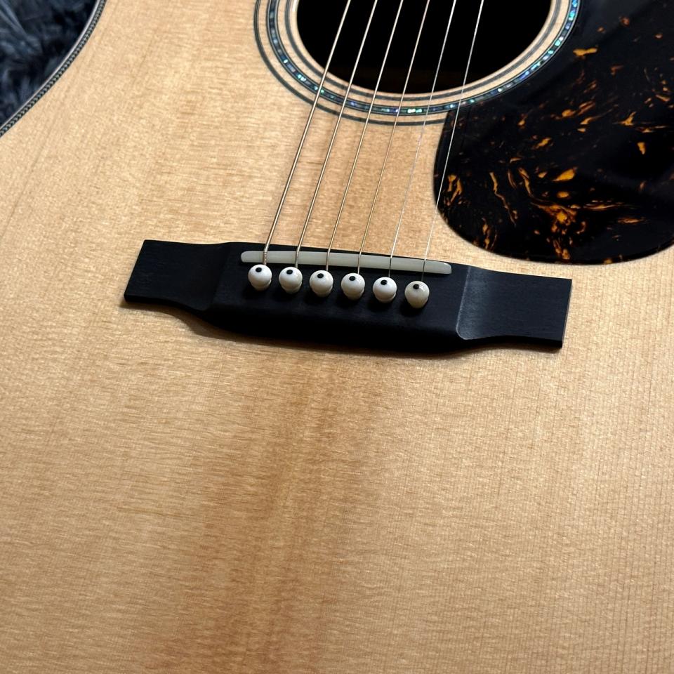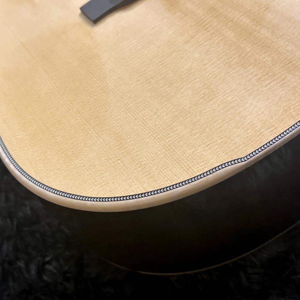 1980年代に伐採された掘り出し材、“80’s シトカ・スプルース” をトップ材に採用した限定モデル。約40年にわたる天然乾燥を経たこの木材は、完成前の板を軽くタップしただけでも違いが分かるほど、豊かに熟成された響きを持ちます。一般的なシトカ・スプルースと比べるとサスティーンが長く、乾いた質感の中に心地よい高音を備えているのが特徴です。また、長い年月を経て落ち着いた色合いへと変化した木肌が、サウンドだけでなく外観にも深みを与えています。