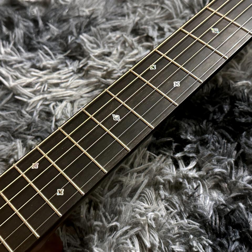 天神部にはマダガスカルローズウッドを配し、ロゴには白蝶貝による筆記体ロゴを採用しました。CUSTOMシリーズに匹敵する、上質で華やかな仕様です。ナット幅は44mmで、多様な奏法やスタイルにも柔軟に応える設計となっています。