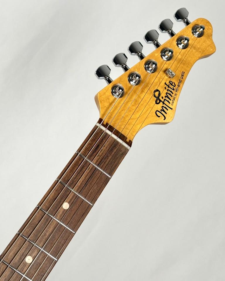 少し小ぶりなディンキーシェイプを採用しており、ネックジョイント部分には小菊ロジックを指板とネックの独自接着などInfiniteの特徴をしっかりと反映したモデルです。