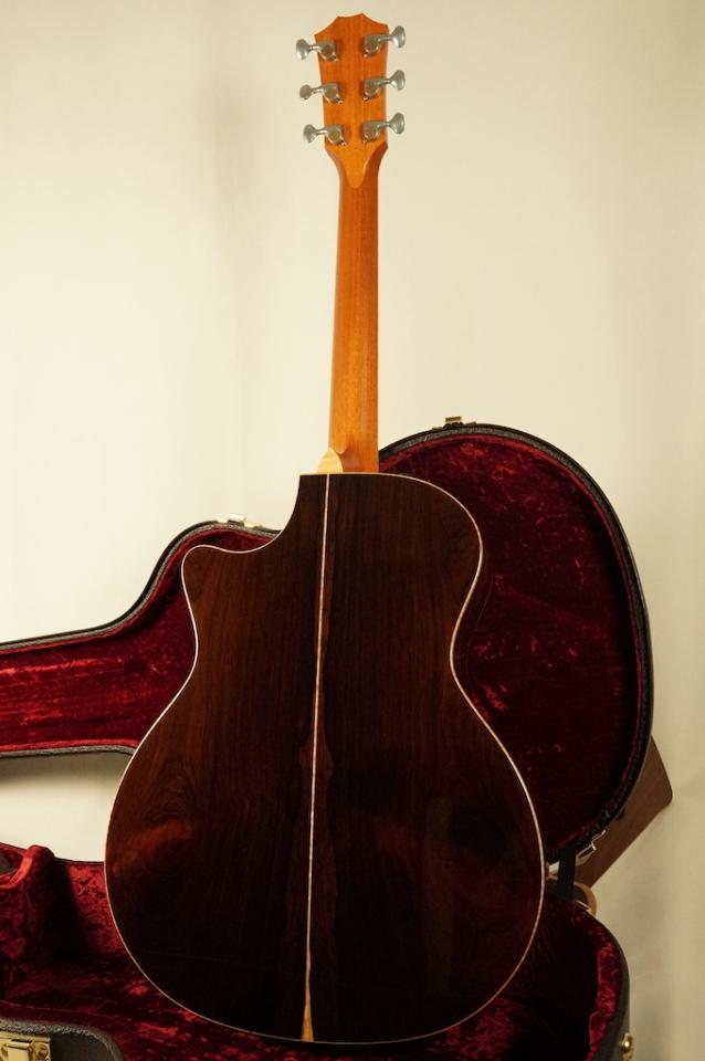 ネック反りや補修跡はなく、弦高もTaylorらしい引き心地の良い数値でセットアップ。