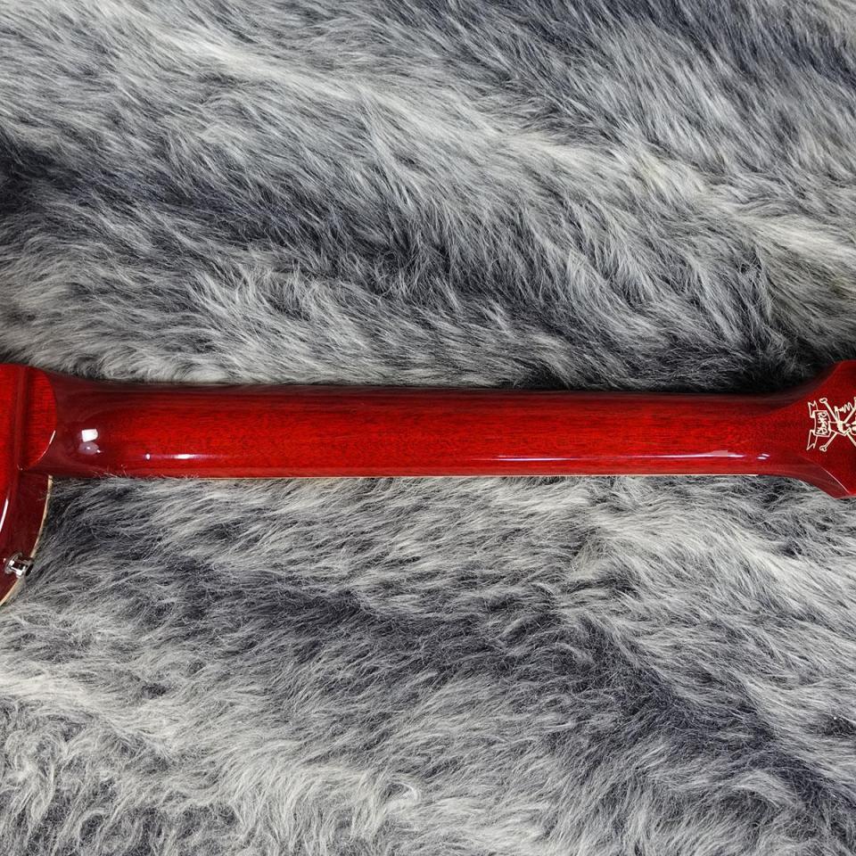 元々カラーはブライト・チェリー・サンバーストでしたが、スラッシュはジェシカをリフィニッシュしました。スラッシュのサイン入りトラスロッド・カバーに、シャーラー・ストラップロックが搭載されています。その他付属品として、スラッシュ・ピック・セット、USAレザー・ストラップ、マルチツール、ブランクのトラスロッド・カバーがハードシェルケースに収められています。