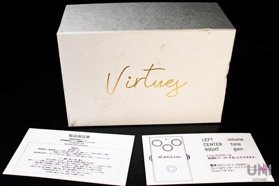 「monica」は2019年設立「Virtues」のフラッグシップ・モデル。YOASOBIのサポート等で活躍されているギタリストAssH氏が愛用していることでも知られており、シグネチャー版もリリースされています。