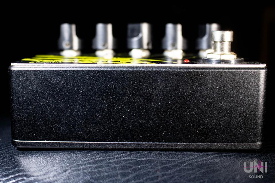 plexiスイッチをONにすると歪みの量が大幅に減り、プレキシ系アンプの独特のエッジ感を持つペダルに様変わりします。
