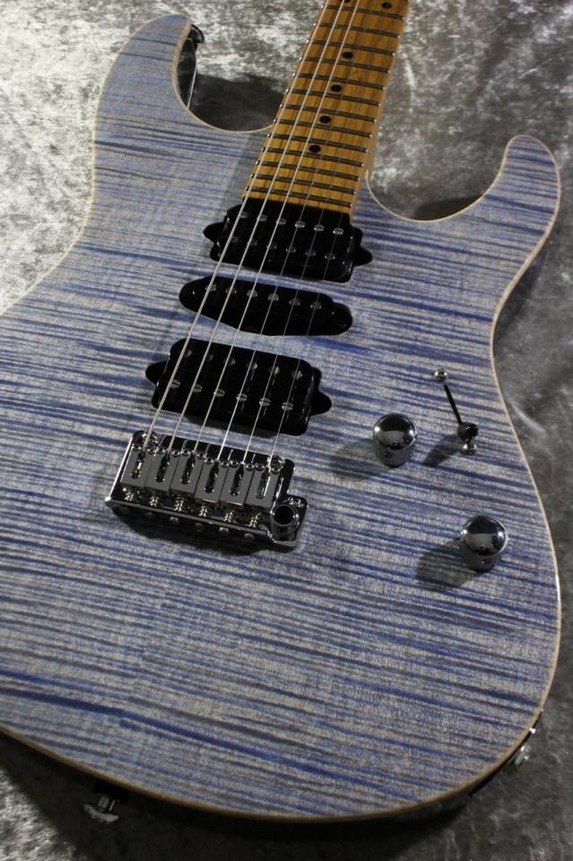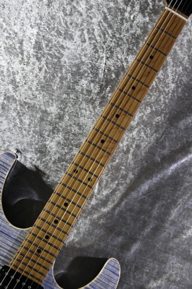 透き通るようなTrans Blue Denim上に美しく広がる杢目とのコントラストが非常に神秘的なフレイム杢でございます。