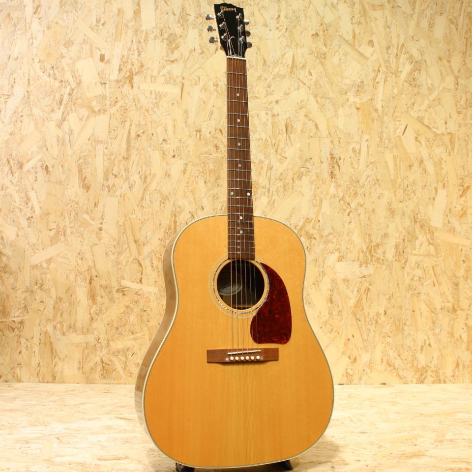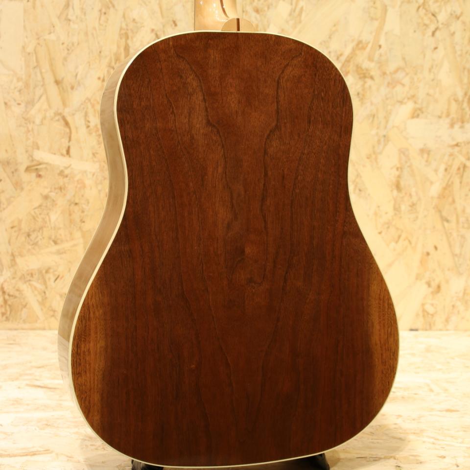 GIBSON伝統のJモデル。大元を辿れば1934年に発売が開始された”Jumbo”から始まり、今日まで続く”J-45”や”の系譜となるギター群です。そのJ-45/J-50を基に2014年にJの仲間入りを果たしたのが本器”J-15”。現行では製作が行われていないモデルです。本個体は2017年製のUSED品。シトカスプルーストップ、ウォルナットサイド&バック、メイプル&ウォルナットの3Pネック、ウォルナット指板&レクタングルブリッジ、ドット指板インレイ、べっ甲柄スモールガード、グローバークロームペグ、スキャロップドXブレイシング、アンティークナチュラルフィニッシュ、L.R Baggs Element搭載。J-45/J-50と同じボディシェイプ、同じ胴厚、同じスケールを持ち、USAの同じ工場で同じ工程を踏んで製作。材や細部は異なるものの、これだけでも驚異のコストパフォーマンスを誇っています。そして全ての材は北米産のトーンウッドを使用。ネックに使われているメイプル材とトップのシトカスプルースはカナダが産地、サイドバックと指板に使われているウォルナットもアメリカの北部が有名です。カナダの国境に近いモンタナ工場だからこその調達のし易さもあったのでしょう。これによってJ-45/J-50と異なった個性を持った1台へと仕上がっています。同時期に生産されていたモダンな仕様のHP(High Paformance)シリーズと比較しても、よりトラディショナルなスタイルを踏襲したモデルとなっています。やはり気になるウォルナットのサウンド。J-45などのマホガニーよりもローズウッドのようにレンジ感が広く、中高音にピークを持つ材。音の質感としてはマホガニーのような乾いた響きを特色としています。歯切れが良く音が前に出るような響き、シャキッとした爽やかなサウンド。ですがボディ厚はしっかりある為、空気感やふくよかな音色も持ち合わせます。軽いタッチでも音が前に出やすくなり、パワフルに弾かずとも鉄弦らしい煌びやかさを出せるレスポンスの良さも特色の一つです。単音での音抜けも良く、まさにプレイスタイルを問わないギター、扱いやすい1本と言えるでしょう。ピックアップにはL.R Baggs Elementを搭載。アンダーサドルタイプのピエゾピックアップを内蔵しており、音の芯を捉えたサウンドの出力が出来るシステムです。操作はボリューム1発で非常にシンプル、難しい操作は要りません。アクティブタイプで出力も充分、繋いですぐに使えるロングセールのピックアップシステムです。全体を通しても使用感は非常に少なく、新品と見紛う程の状態をキープされている個体。よくよく見ると薄っすらクロスでの拭き跡が僅かに見られる程となっています。ネックのコンディションも非常に良好、サドル残やトラスロッド残りも充分に残したこれからも使っていける1本です。USA製でありながら比較的手に取りやすいリーズナブルさも魅力の一つ。J-45に近しい感触、また異なる個性を持っています。初めてのGIBSONアコースティックにも最適なモデル、ステージですぐ使える即戦力の1本です。是非お手元でお確かめくださいませ。