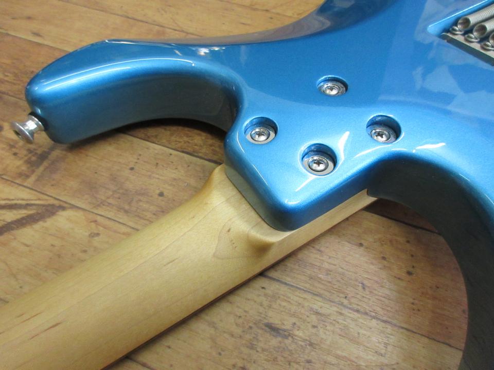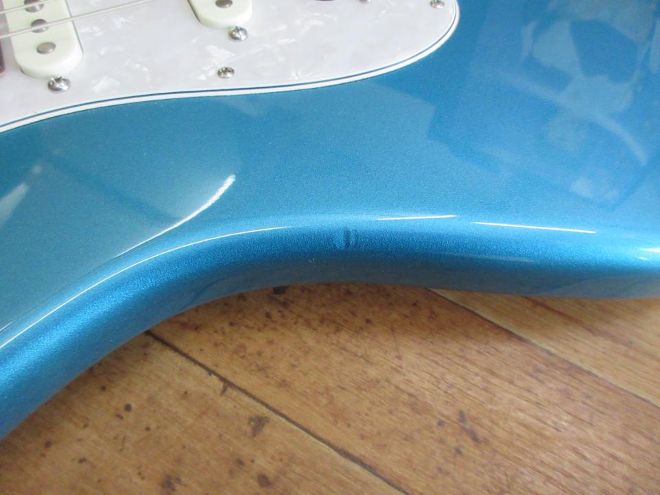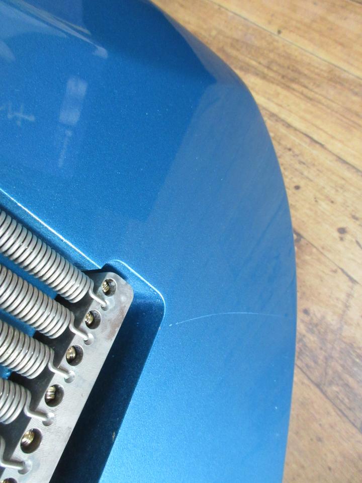 外観はBODYのくびれ(左側)のエッジ部に5×5mm位の打痕(画像)とBODYの裏に細くて浅い線傷と僅かなスレ(画像)がありますが、他にはほぼ傷や打痕等は見当たらず、とても綺麗だと思います。また、NECKのそり、ねじれ等は見られず、フレットの減りも極々わずかで、音のつまりやびびりもありません。サウンドに関してはピックアップの特徴なのか、クリア時にはとても透明感のあるさわやかなサウンドを出力し、歪時には非常に切れの良いドライブサウンドを出力します。