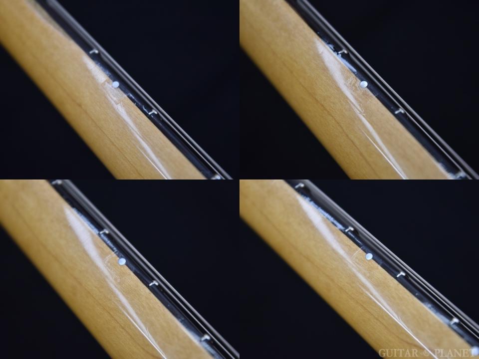 ヘッド裏に光にかざすと確認できる程度のステッカー跡、ネックサイドのポジションマーク部分にシールが貼られていた痕跡が確認でき、