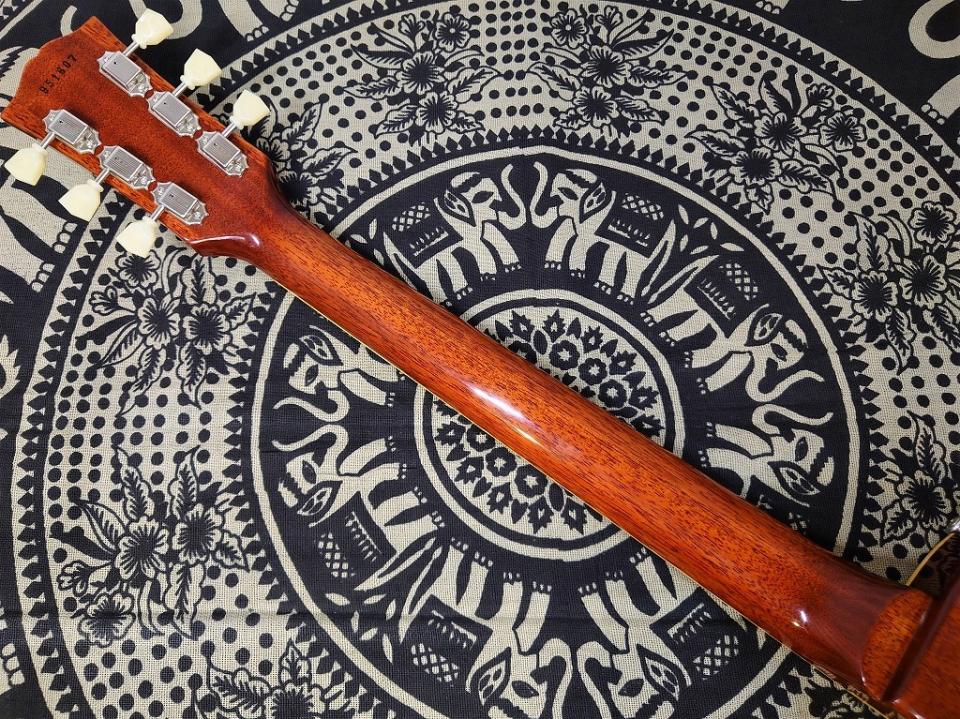 カラーは経年によりやや退色したサンバーストを表現した「ウォッシュドチェリー」、塗装面、金属パーツなどに軽いエイジングを施した「VOS」仕上げの個体です。