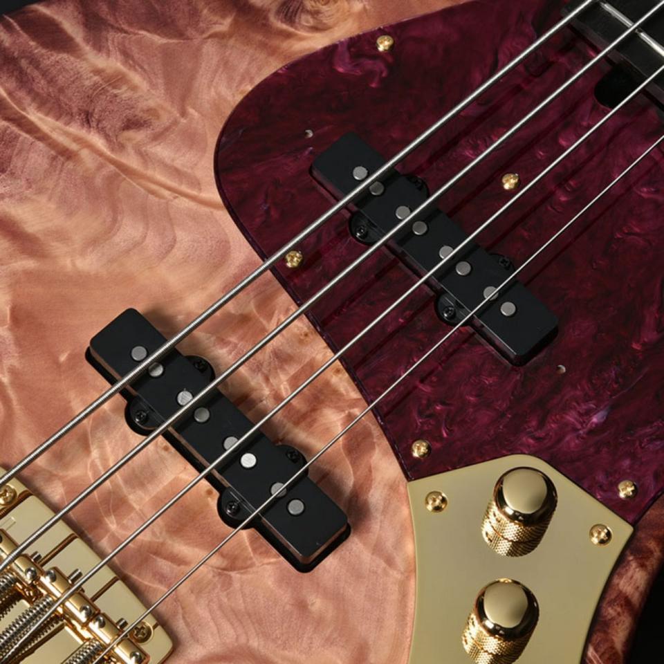アルニコ5マグネットを採用したピックアップで、momoseベースらしい、高音の煌めきと低音の厚み、明瞭な輪郭やクリアな立ち上がりが楽しめるピックアップですが、木材の組み合わせの影響で、レギュラーモデルと比べてさらにパンチのあるサウンドになっていると想像できます。