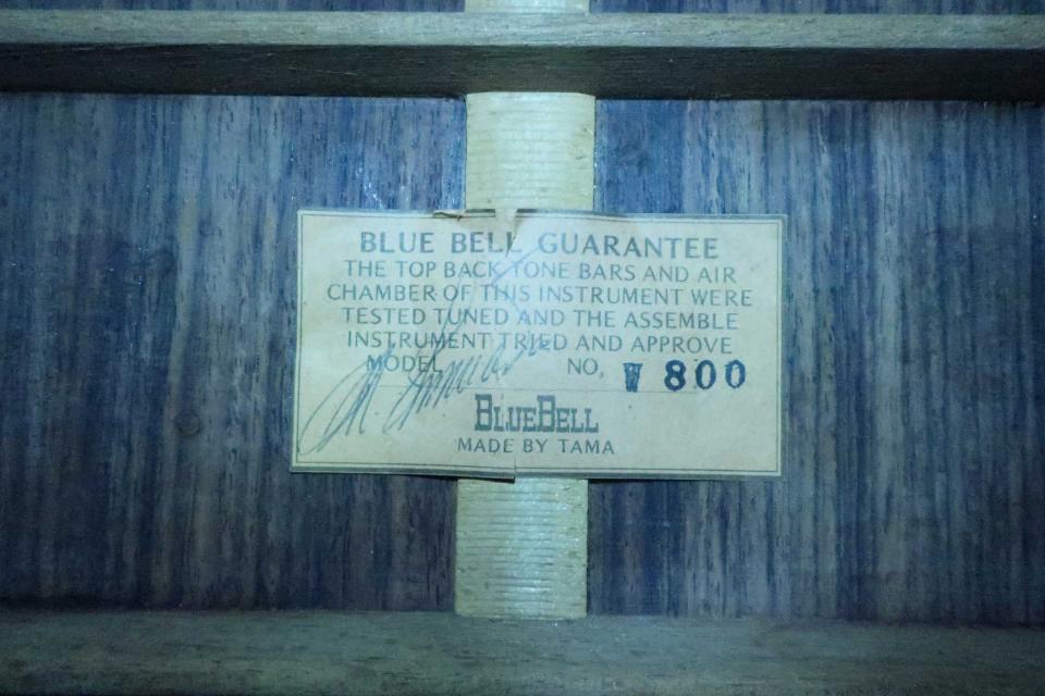 1970年代に多満製作所で制作された希少モデル、BLUE BELL Made by TAMA W-800の入荷です!当時としても高級モデルで、トップにはスプルース単板、サイド&バックにはローズウッド単板が採用され、エボニー指板&ブリッジ、ヘリンボーン・バインディングとスノーフレイクス・ポジション・マーク&ブリッジ・インレイ、ベッコウ柄ピックガードと1970年代に人気の高かったギャラガー・Doc Watoson・タイプでシンプルなルックスながら作り込みの良い高級モデルです。