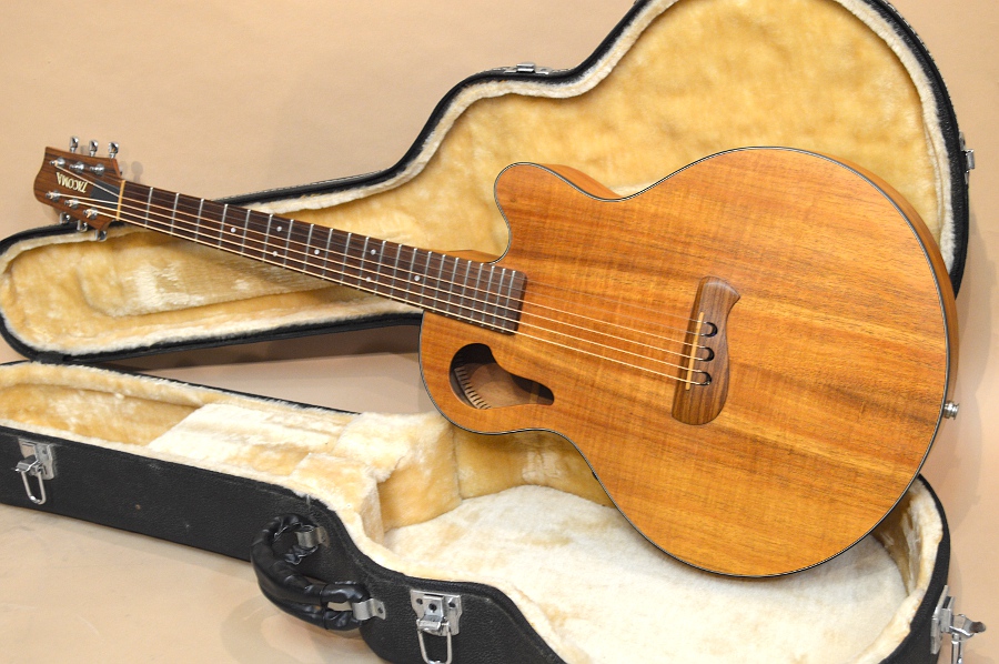 最近では市場への流通量がめっきりと減ってしまったタコマ・ギターの極美品中古が入荷しました!タコマ・ギターは1997年から生産を開始し、その斬新なアイディアとデザインで2000年代に掛けて流行し、日本でもCharなどの使用で人気のブランドとなりました。その後2004年にはフェンダー社に買収され、数年後にはタコマ・ブランドでの生産は終了、オベーションのOEM生産工場としてギターの生産は続けられていましたが、数年前についに工場閉鎖となり、姿を消してしまった悲運のブランドです。今回はそんなタコマ・ギター人気を決定付けた一番人気のチーフ・シリーズの上位機種C5Cが入荷しました!