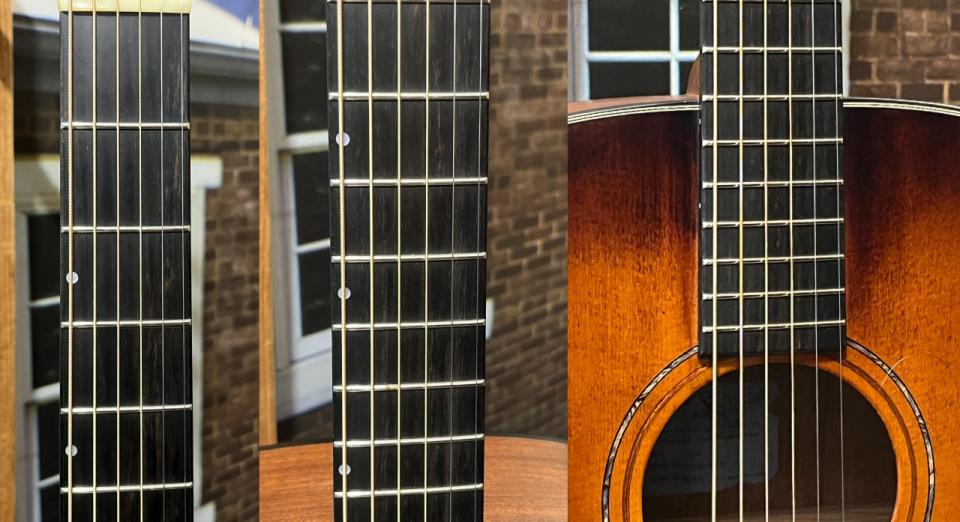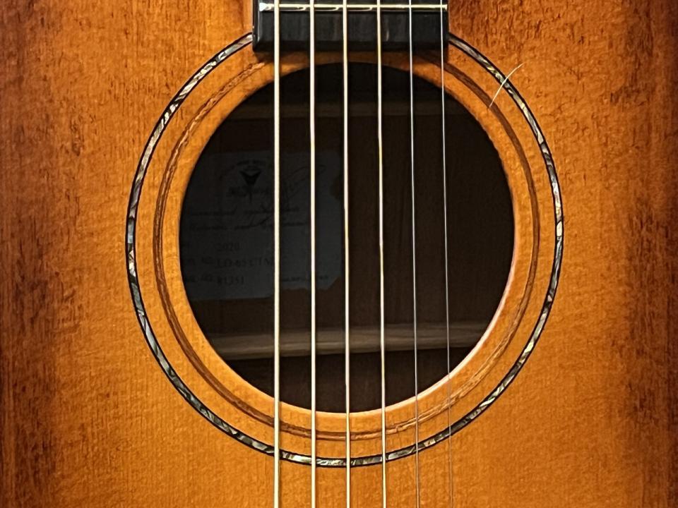 本器はヤイリギターオリジナルボディシェイプLOを基に、表板にはスプルース単板材、側板・裏板にはマホガニー材を使用、エボニー指板・ブリッジ、マホガニーネック、艶消し仕上げの個体となります。