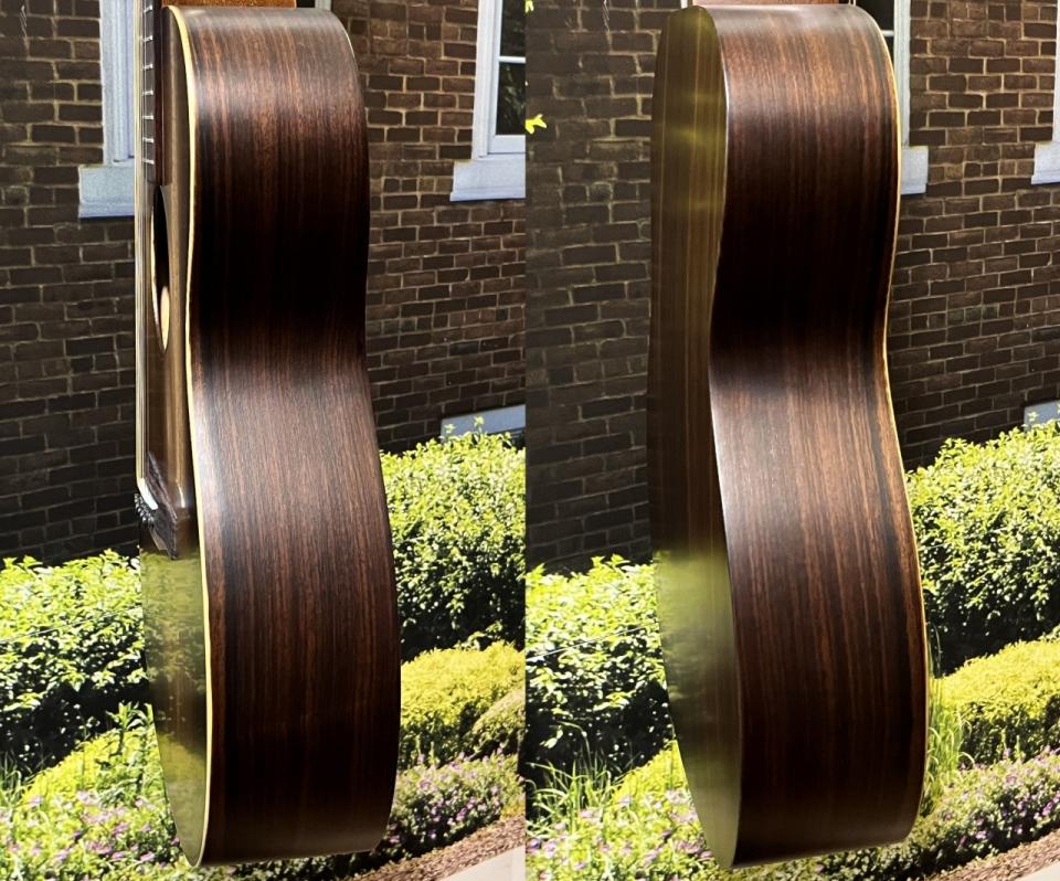トップ板にはVTS加工を施したアディロンダック・スプルースを贅沢に使用し、サイドとバック板にはインディアン・ローズウッドを使用しています。