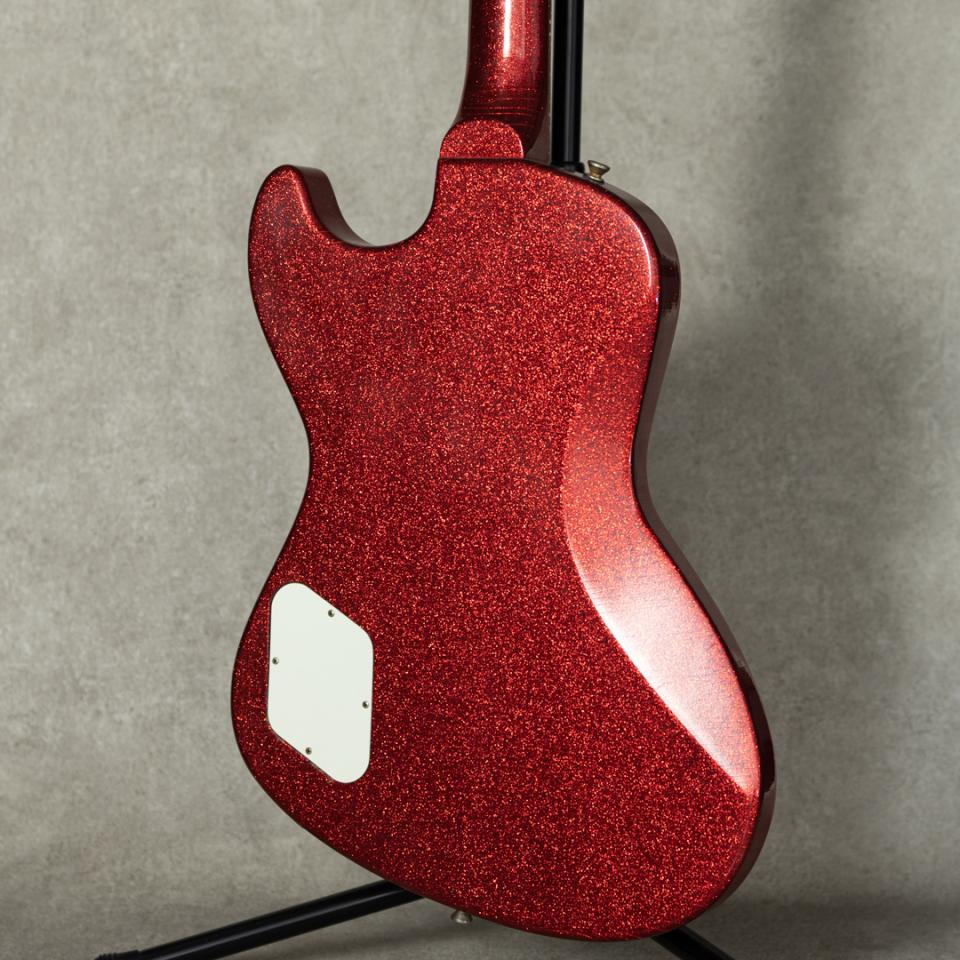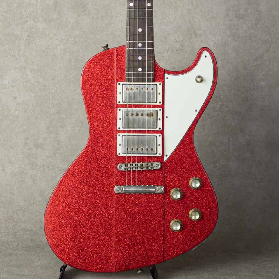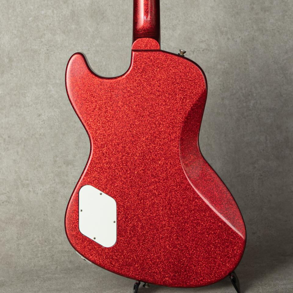 ブランド初のオフセット+セットネックスペックの”Revenge Model”は、トラッドとモダン、クラシカルな貫禄とアーバンな雰囲気が上手くマッチした絶妙なデザイン。当オーダーではネック、ボディ材にスパニッシュシダーを採用しており、適度に低音の削がれた軽やかな鳴感、僅かに食いつきのある粘りとが、どこか50’s Vintageにも繋がるような納得のサウンドキャラクターです。(シダーというとスプルースに並び、アコースティックのトップに使われるイメージですが、スパニッシュシダーに関しては、”香りがシダーに似ていた”ことからの呼ばれ方。学名”Cedrela odorata”は実際センダン科の広葉樹で、むしろマホガニーに近いといえます。)搭載のローラーピックアップのクリアでレンジの広いエアー感を伴ったキャラクターとも相まって、レスポンシブルに魅力的なトーンをアウトプット致します。その他、各弦ごとにギア比を変えたオープンタイプペグ等随所の拘りも感じられ、ルックスのインパクト以上に高い完成度の一本です。