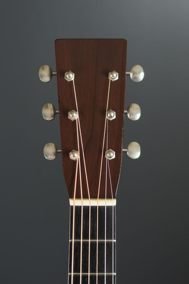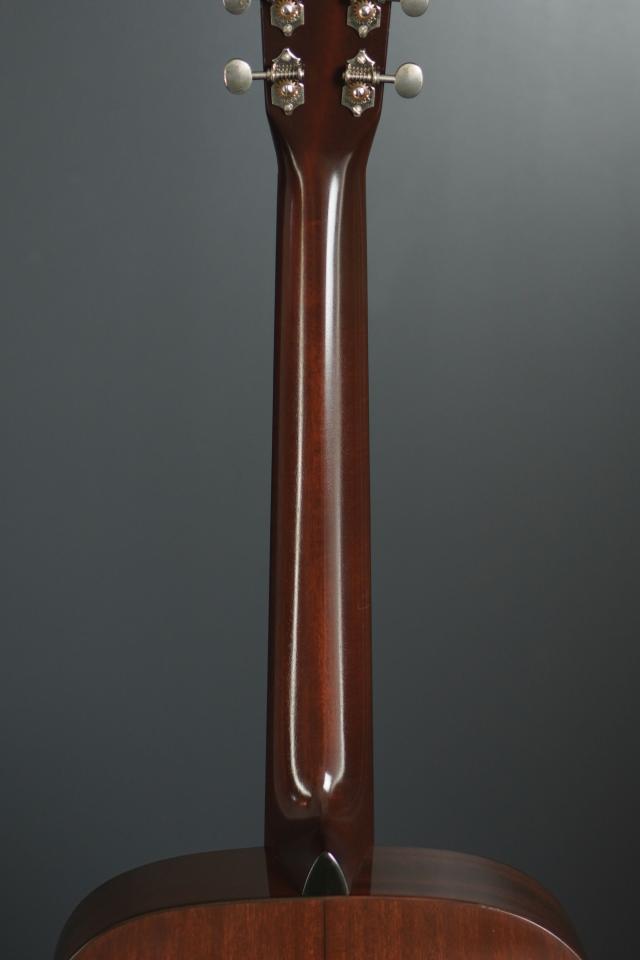 ネックのマホガニーも薄っすらと杢が出ているとても良い質感のマホガニーが使われており、やや肉厚ですが程良い厚みで握り易いソフトVシェイプのネックは、戦前のマーチンのように絶妙な握り易さがあります。