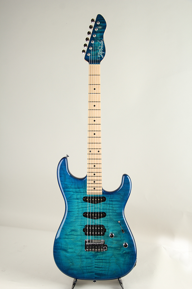 オリジナルのストラトスタイルに、ボディに美しいキルトメイプルをトップにアルダーバック、メイプルネックに貼りメイプル指板といったウッドスペックを採用。ボディはグロス塗装でネックは演奏性を考慮しサテン塗装が採用されております。丸みの強いボディバックコンターやカッタウェイ仕上げとなっており優れたフィット感と弾き心地を実現、2点支持トレモロにフラットな10Rの指板アールにミディアムジャンボフレット仕様、SSHピックアップレイアウトといった実用的なプレイアビリティに優れた仕様が随所に見られます。