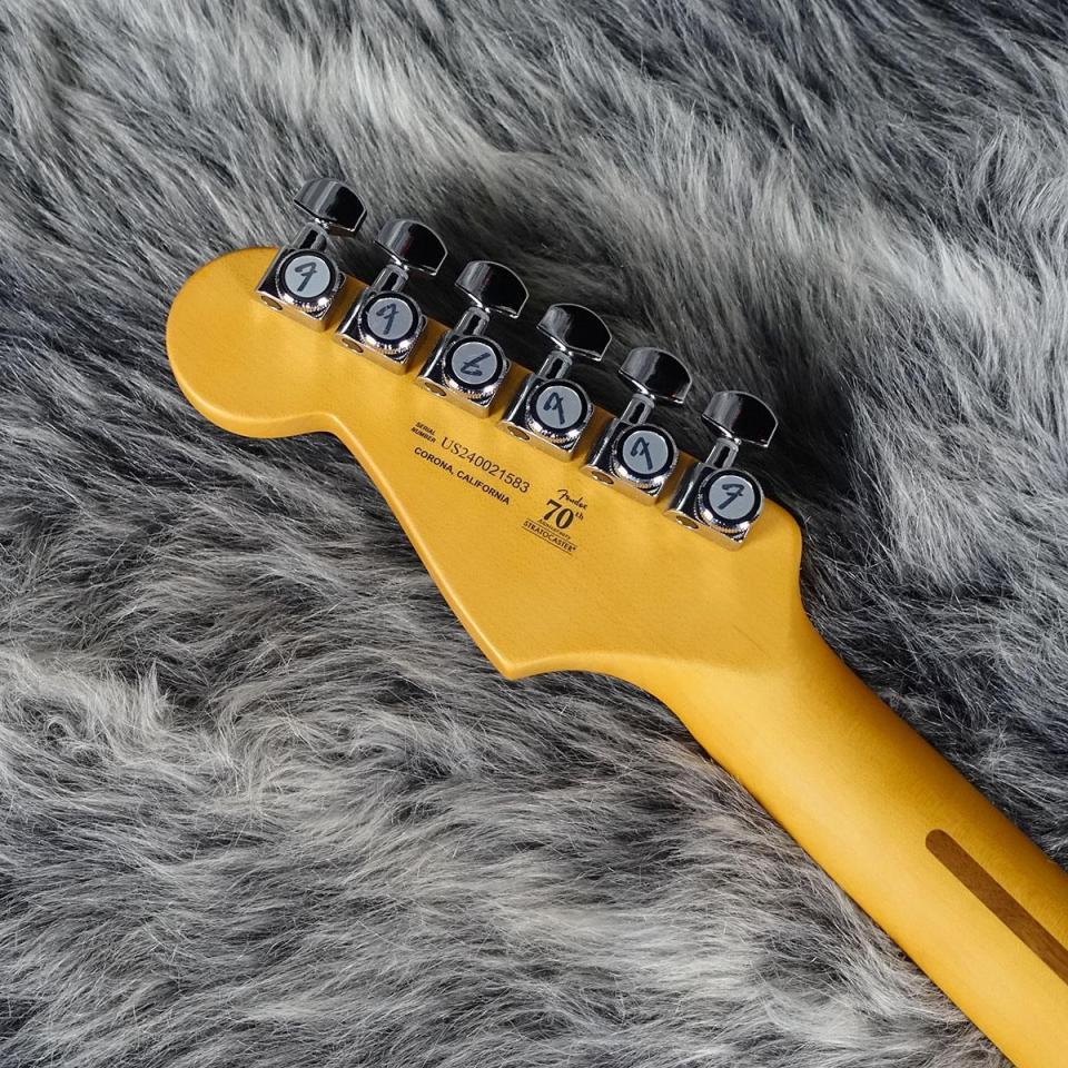 ポップインアーム付き2点支持American Ultraシンクロナイズドトレモロ、ポリッシュ仕上げのステンレスブロックサドル、コールドロールドスチールブロック、デラックスロッキングチューニングマシン、ソフトタッチノブ、1plyアノダイズドピックガードなど、高い実用性を誇る機能を搭載しています。