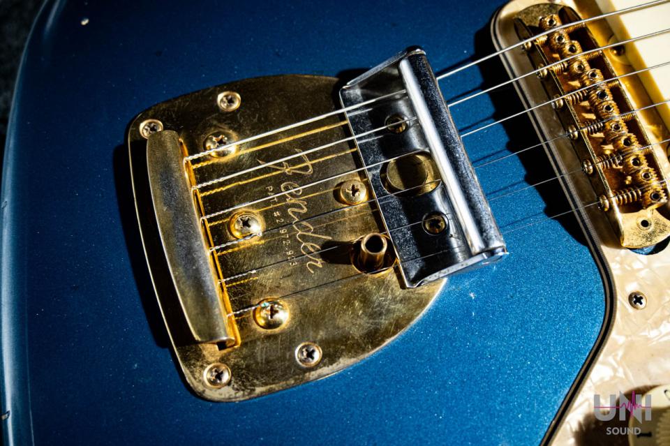 INORAN JAZZMASTERの特徴といえるバズストップやAmerican Vintage ’65 Jazzmasterピックアップ、 横方向のスライドスイッチなどはそのまま、レイクプラシッドブルーのマッチングヘッドにゴールドパーツをあしらった、記念モデルにふさわしいゴージャスなモデル。