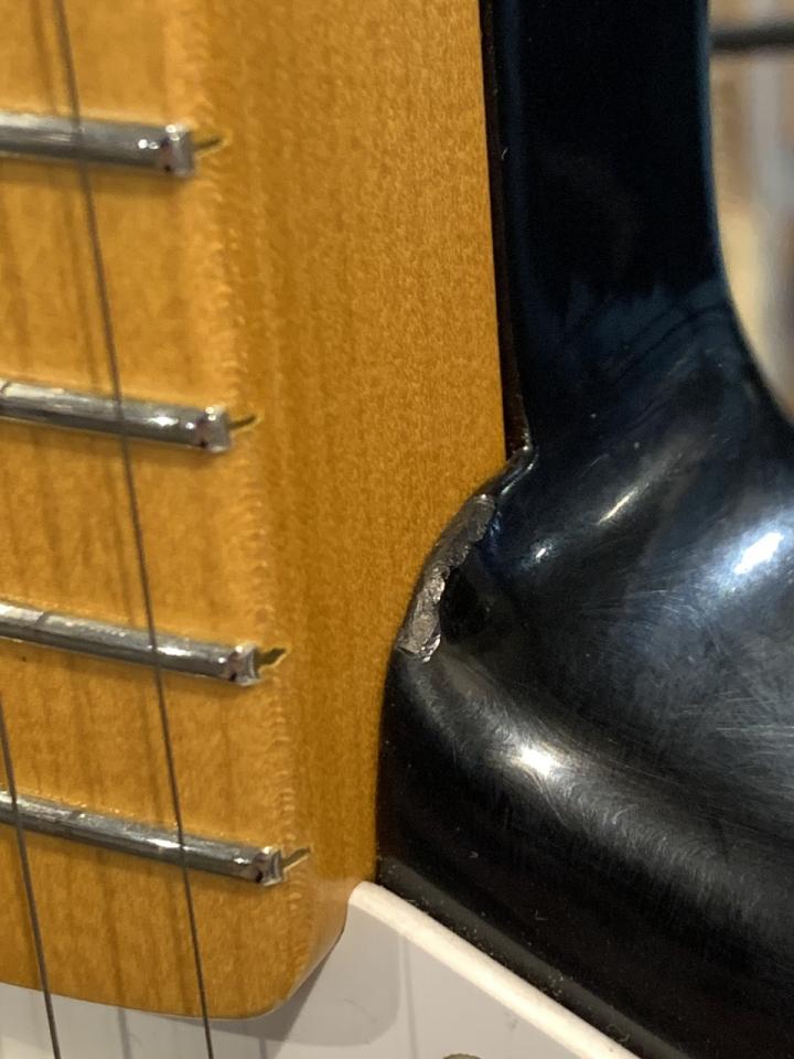 1弦側ネックポケット付近に塗装欠けがあるため、特価でご提供いたします。