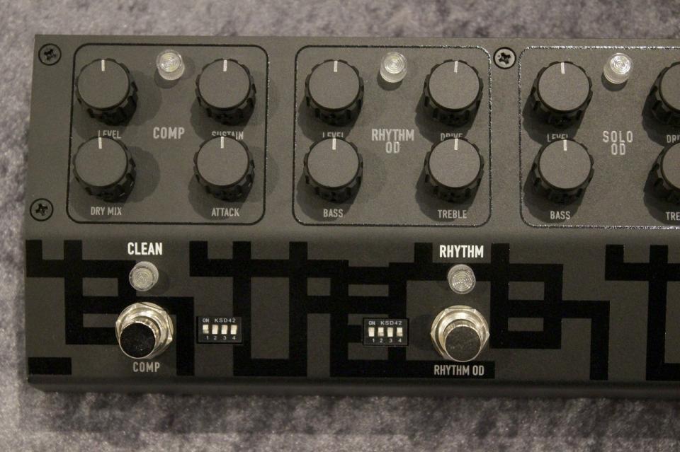 バッキング用のオーバードライブです。布袋氏の音色は独特で、あまり歪んでいないにも関わらず豊かなドライブサウンドで、かつ各弦の響きが感じられるのが特徴です。布袋氏はキレのあるフレーズが多いので、不要な低音域が出ないように調整を行っています。