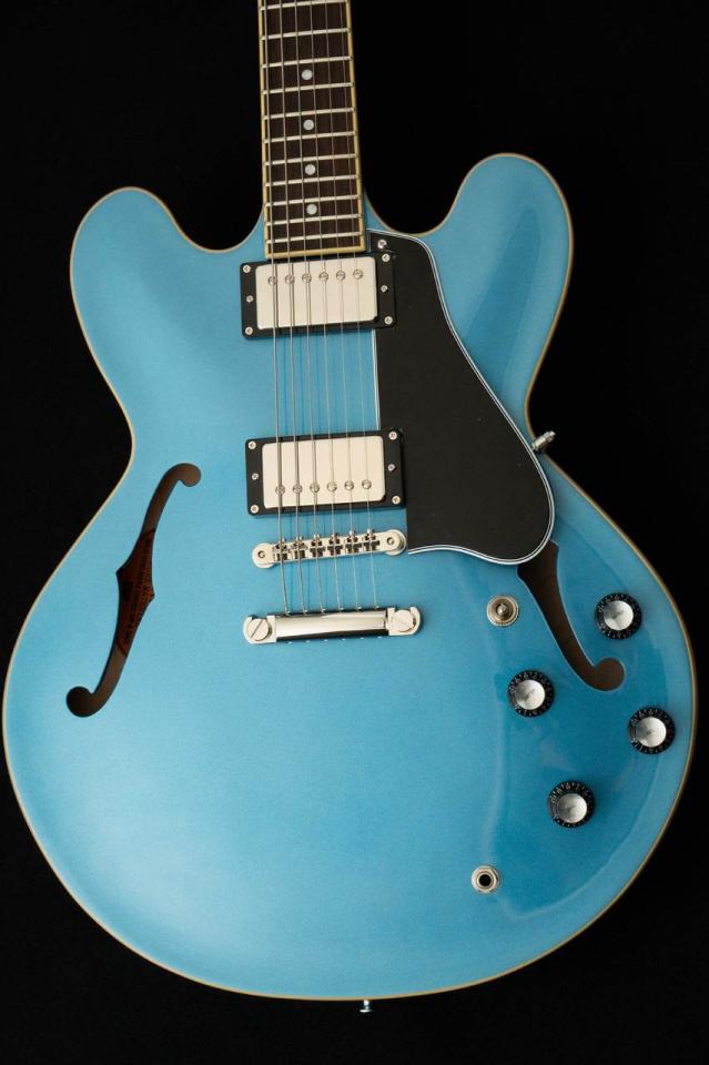 ボディのメイプルは単板削り出しで製作されており、国産セミアコモデルの中ではハイコストパフォーマンスを持つモデルとなっております。
