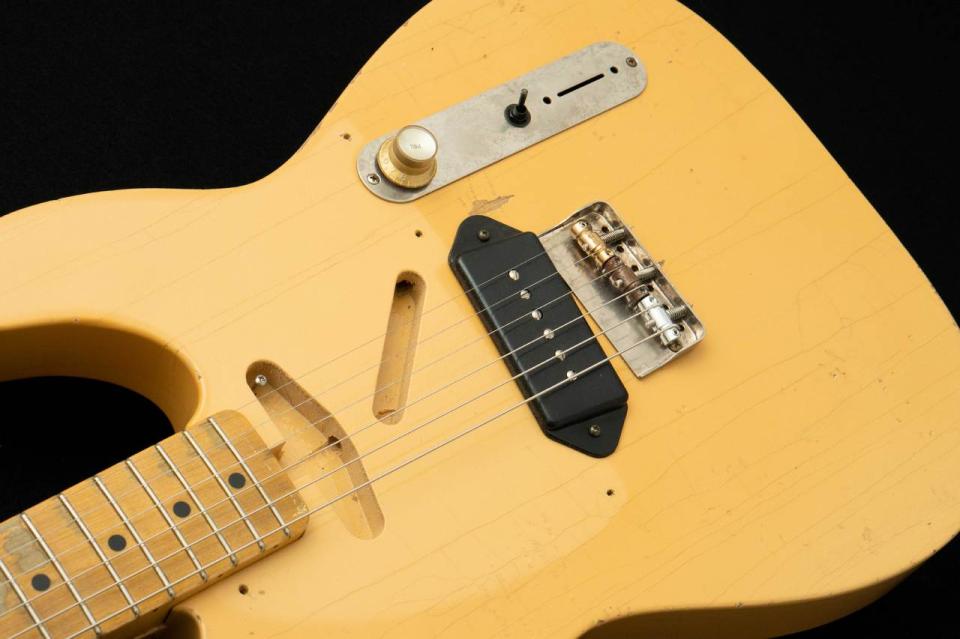 VolumeノブにはTONEの文字を記入、トーンはトグルSWにて固定のON/OFF、サドルは3つと違う材質、P-90 P.U.には絶妙なスラントをつけるなど独特な風格を漂うモデル。