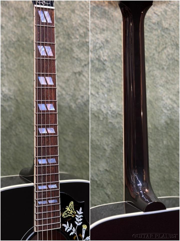 ヘッドに輝くGibsonのモダンロゴは、『マザー・オブ・パール』で彩られ、ペグは耐久性とチューニング精度に定評のある『グローバー・ペク』をマウント、弦振動を効率的にボディーに伝達するようにデザインされた『TUSQ/タスク』のナット、快適な丸みを帯びた『ラウンド・ネック』の採用など今風の要素が上手くブレンドされています。