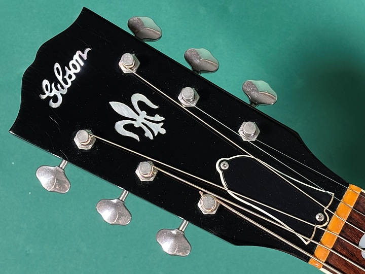 ピックアップが取り付けられていた形跡があり、現在は取り外され、エンドピンはボーン製のコンバージョンピンに交換されています。