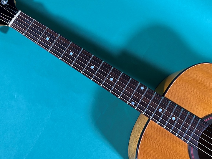 トップはスプルース、サイド、バックはメイプル、ローズウッドの指板とブリッジです。ペグはオリジナルクルーソン、ギブソンノブで動作に硬い箇所はありますがチューニングは問題ありません。