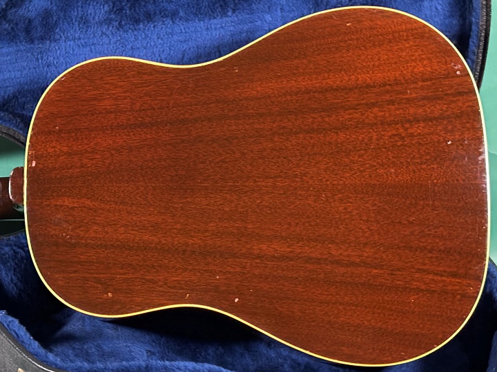 このブリッジ形状の69年モデルは、斉藤和義さんの黒いJ-45と同じで、色違いですね。