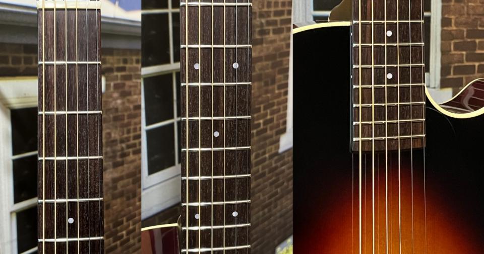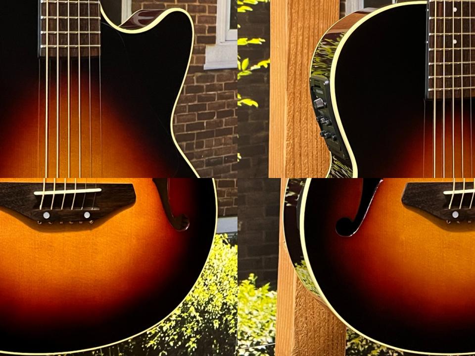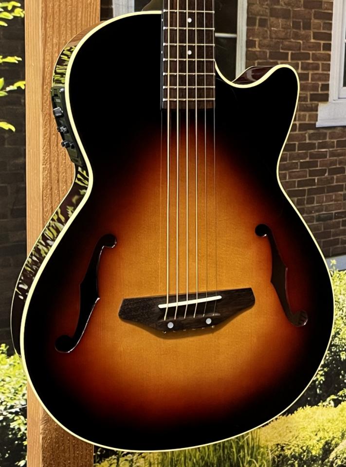 一見するとエレキギターにも見えるそのボディは内部が空洞になっており、アンプに通さずともご自宅での練習または曲作りなどに最適なサイズとなり、エレクトリック・ギターのボディスタイルを持ち、エレキプレイヤーの方でもスムーズに演奏が可能なアコースティックギターとして、人気のモデルです。