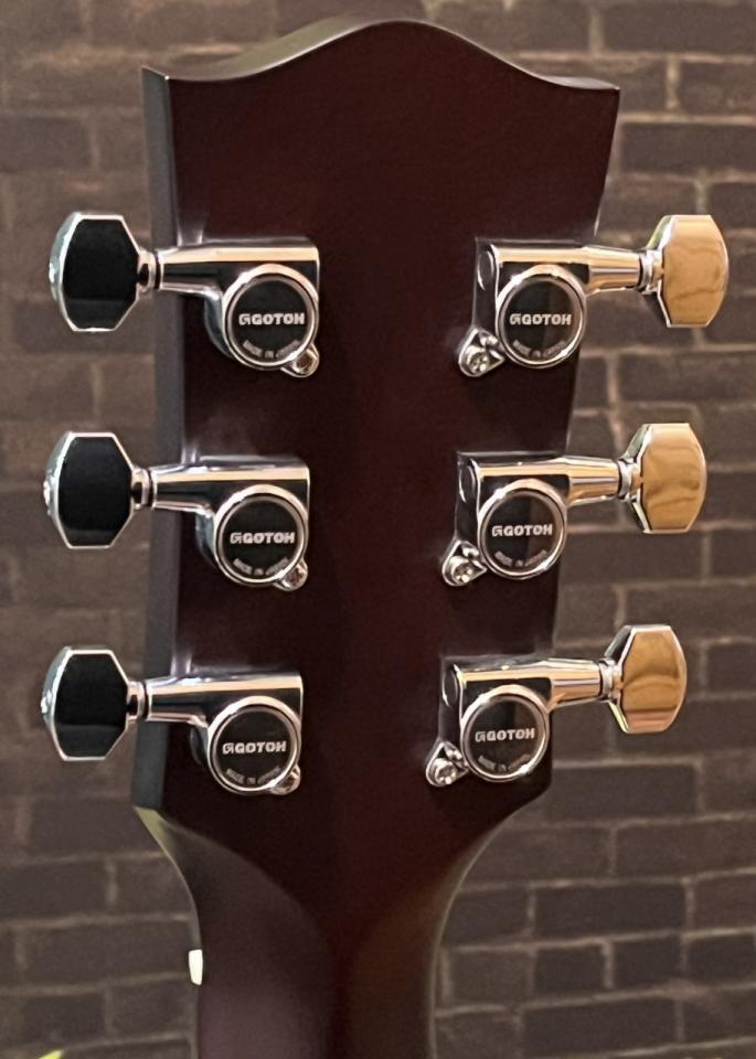 ボディ・ヘッドグロス仕上げ、ネック裏サテン仕上げ、透明ピックガード仕様