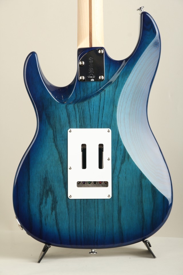 当モデルは、アッシュボディ、メイプル指板、人気のシースルーブルーバーストカラーで塗料はラッカーをを採用したスポット生産モデル。